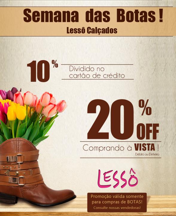 A Coleção da LESSÔ exalta a beleza de ser mulher, em cores e formas que tornam sapatos e bolsas, peças exclusivas direcionadas a mulheres de bom gosto e...maisLessô é sinônimo de estilo, conforto e elegância em qualquer ocasião.
